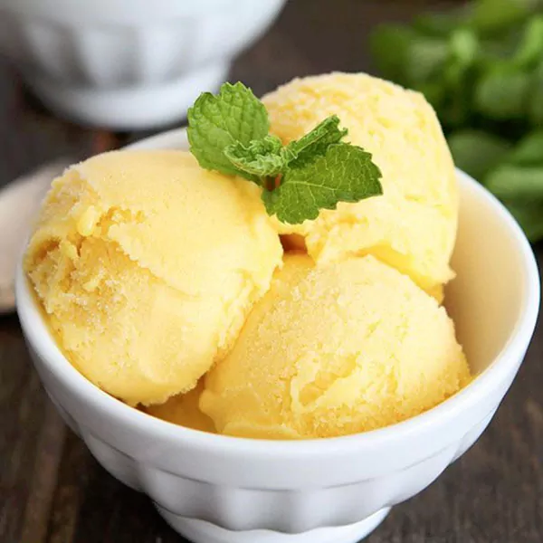 Yummy Mango Sorbet Served With Sweet Mango Coulis