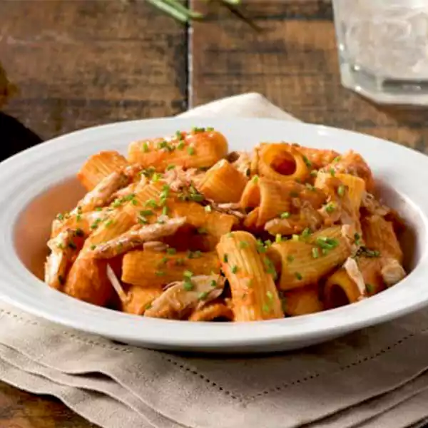 Baked Pink Pasta With Mushrooms Our Signature Pink Sauce Gratinated With Mozzarella & Parmesan Cheese Crumbles