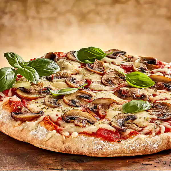 Variety Of Mushroom Cooked In Truffle Oil Baked With Mozzarella And Classic Cheddar